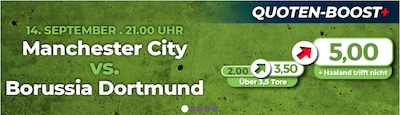 Wette mit dem Spezialboost von Happybet auf Manchester City – Borussia Dortmund!