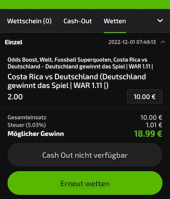 Gewinnt Deutschland? Wenn, dann mit erhöhter Quote!