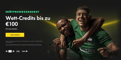 Du musst deine erste Einzahlung einmal zur Mindestquote 1.20 umsetzen (innerhalb von 30 Tagen). Danach werden dir Wettcredits in Höhe deiner Einzahlung (max. 100€) gutgeschrieben. Die Credits musst du binnen 7 Tagen aufbrauchen. Aus gewonnenen Wetten darfst du dir den Reingewinn behalten (Reingewinn = Gewinn minus Einsatz).